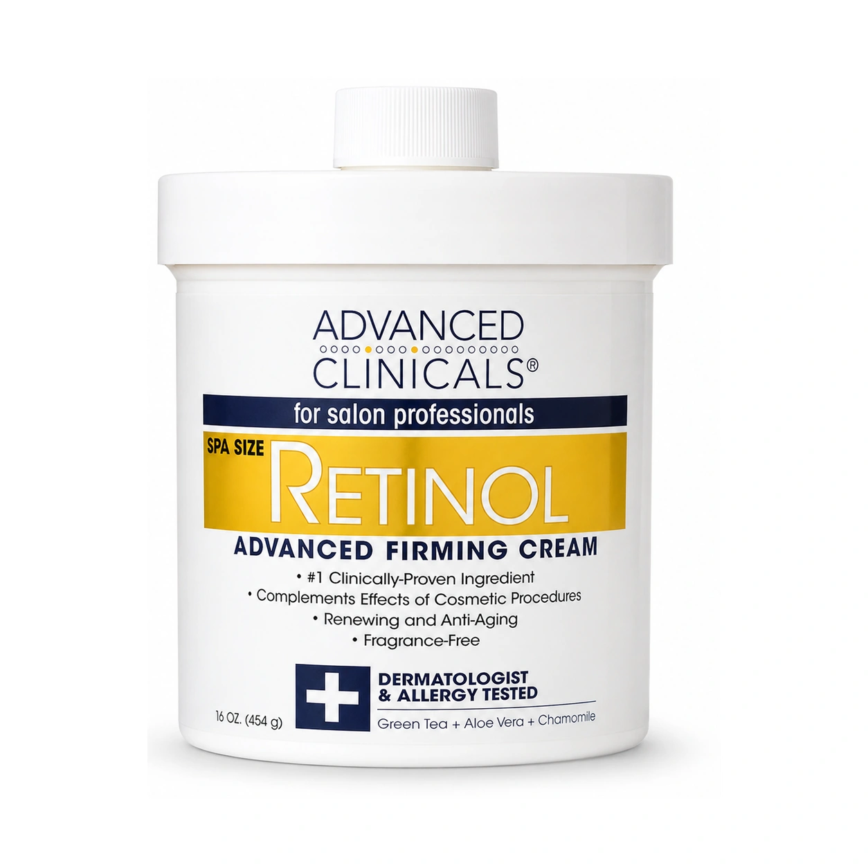 Advanced Clinicals Retinol Advanced Firming Cream is a spa-size face and body moisturizer in a 16 oz (454 g) jar.