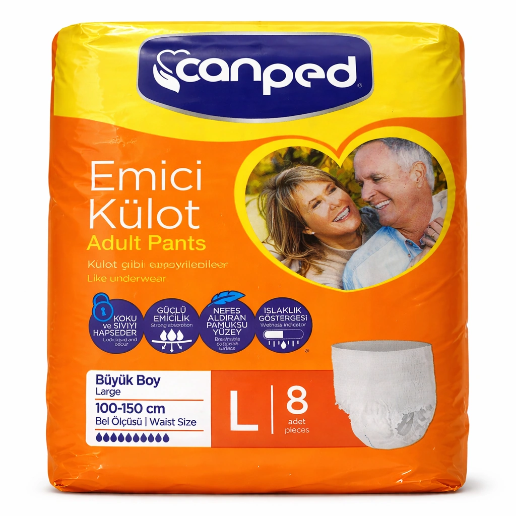 Canped Emici Külot Adult Pants Large is designed for adults needing reliable daily incontinence protection, with a body-fit pull-up style that can be worn like regular underwear.