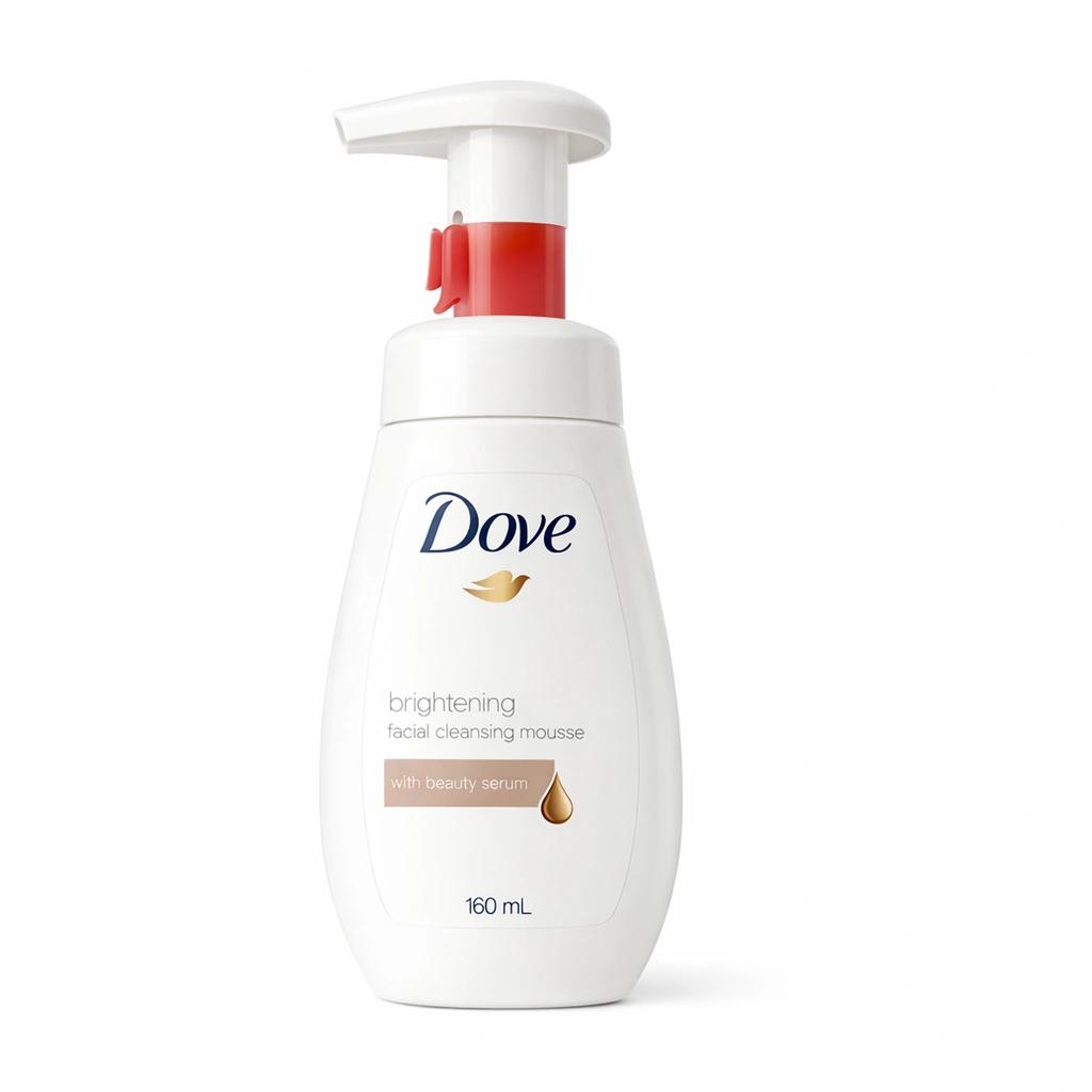 Dove Brightening Facial Cleansing Mousse is a gentle daily facial cleanser in a rich foam texture designed to lift dirt, oil, and residue while keeping skin feeling soft and comfortable after rinsing.
