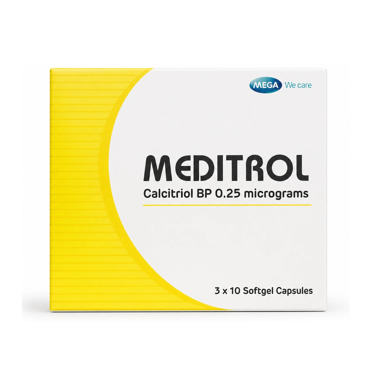 Meditrol contains calcitriol BP 0.25 micrograms, an active vitamin D metabolite, in soft gelatin capsules for prescribed management of calcium deficiency and selected bone disorders.