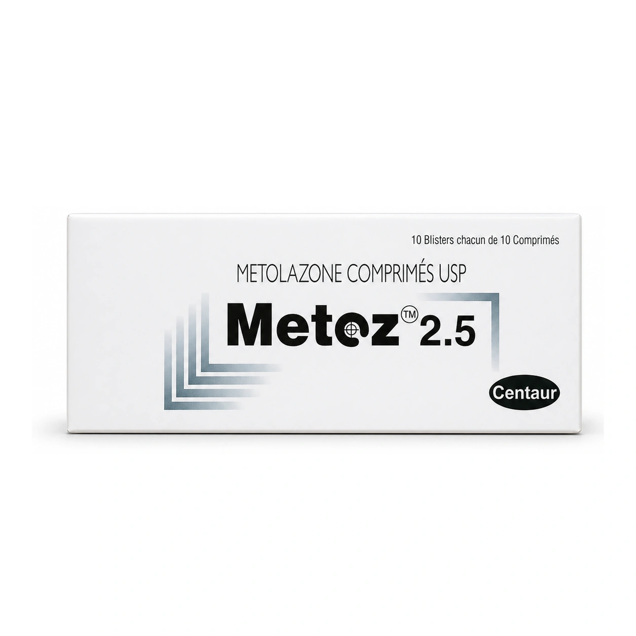 Metoz contains metolazone USP 2.5 mg per tablet in an oral tablet format from Centaur, supplied in a value pack of 10 blisters with 10 tablets per blister (x 100 tablets).