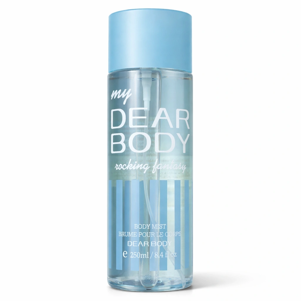 My Dear Body Rocking Fantasy Body Mist is a fine fragrance mist in a 250 ml bottle, made for quick all-over refresh at home, work, or on the go.