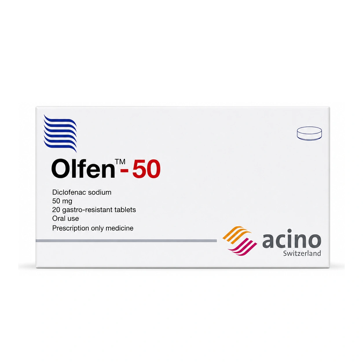 Olfen-50 contains diclofenac sodium 50 mg in gastro-resistant oral tablets, supplied as a box of 20 tablets. It is a prescription non-steroidal anti-inflammatory medicine used when clinician-directed treatment is needed for pain and inflammatory conditions such as joint, back, gout, or post-procedure discomfort.
