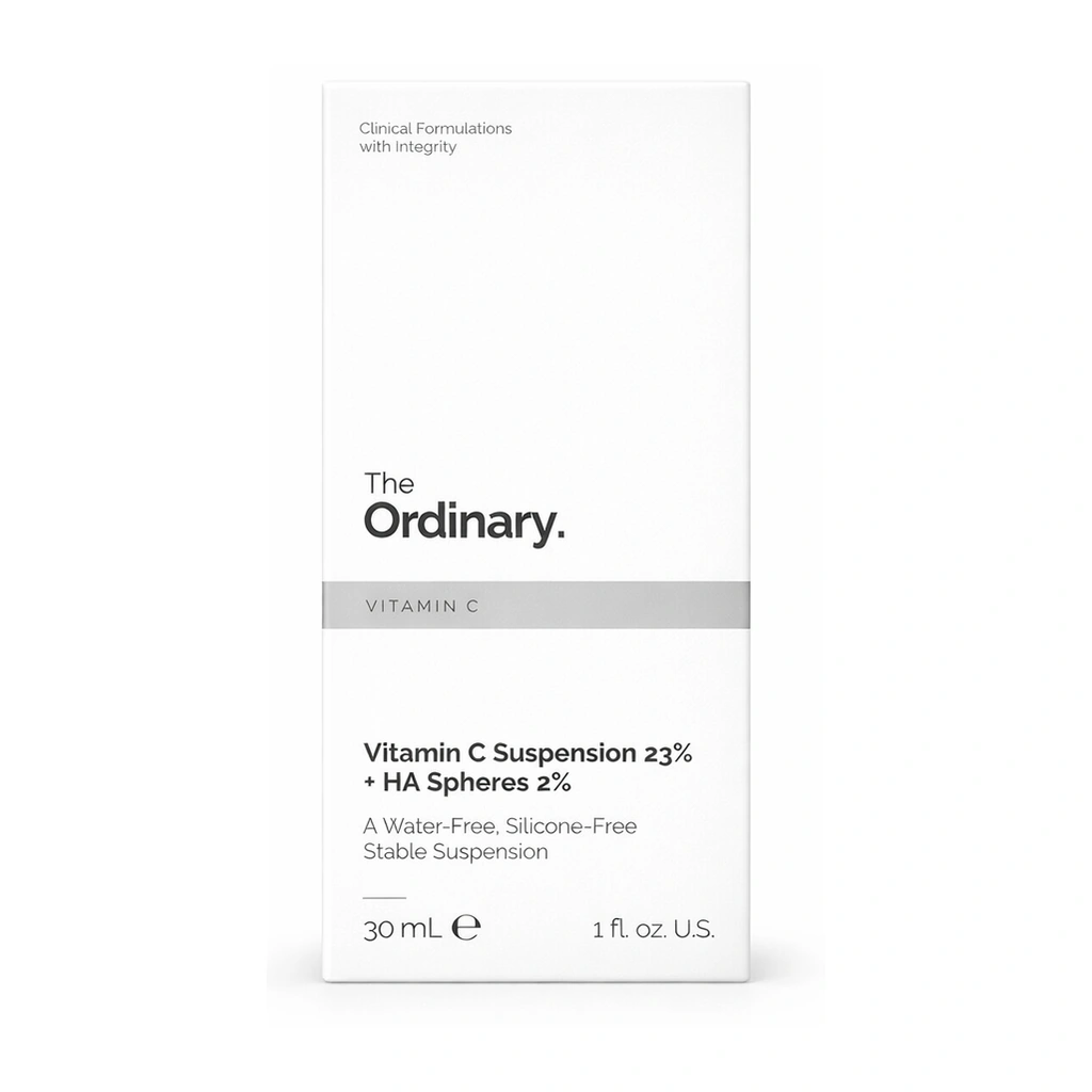 The Ordinary Vitamin C Suspension 23% + HA Spheres 2% is a high-strength facial treatment in a 30 ml pack, formulated with 23% pure L-ascorbic acid and hyaluronic acid spheres to support a brighter, more even-looking complexion.