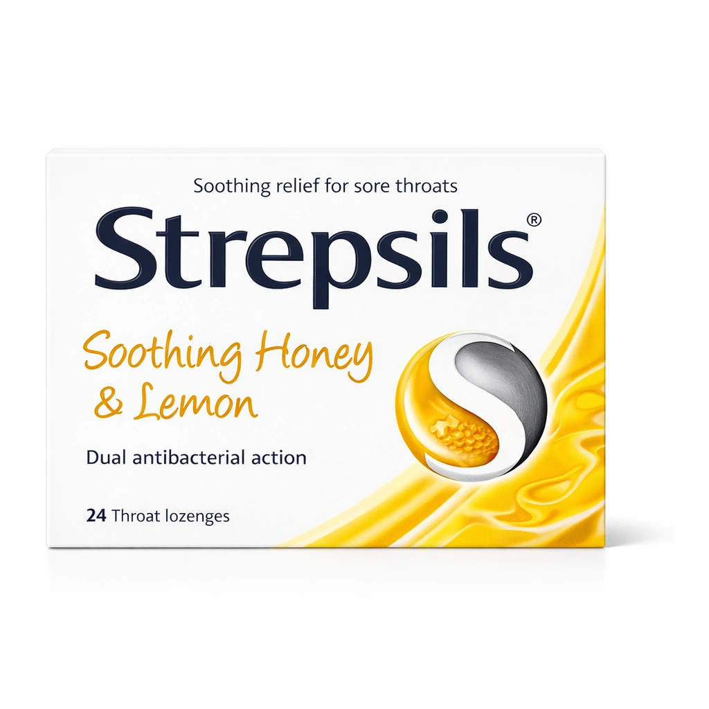 Strepsils Soothing Honey & Lemon Lozenges are medicated throat lozenges formulated with amylmetacresol 0.6 mg and 2,4-dichlorobenzyl alcohol 1.2 mg per lozenge.