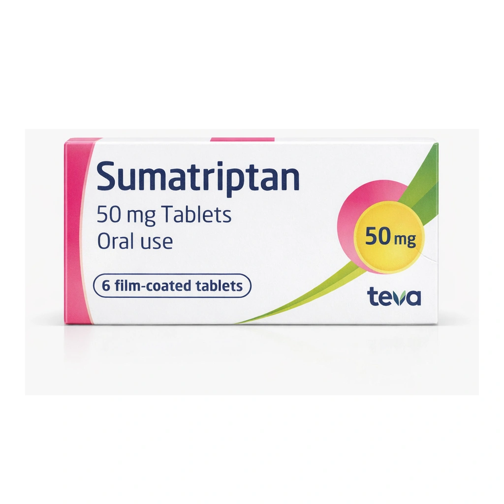 Teva Sumatriptan 50 mg Film-Coated Tablets are for the acute treatment of migraine attacks, with each tablet containing 50 mg sumatriptan (as succinate).