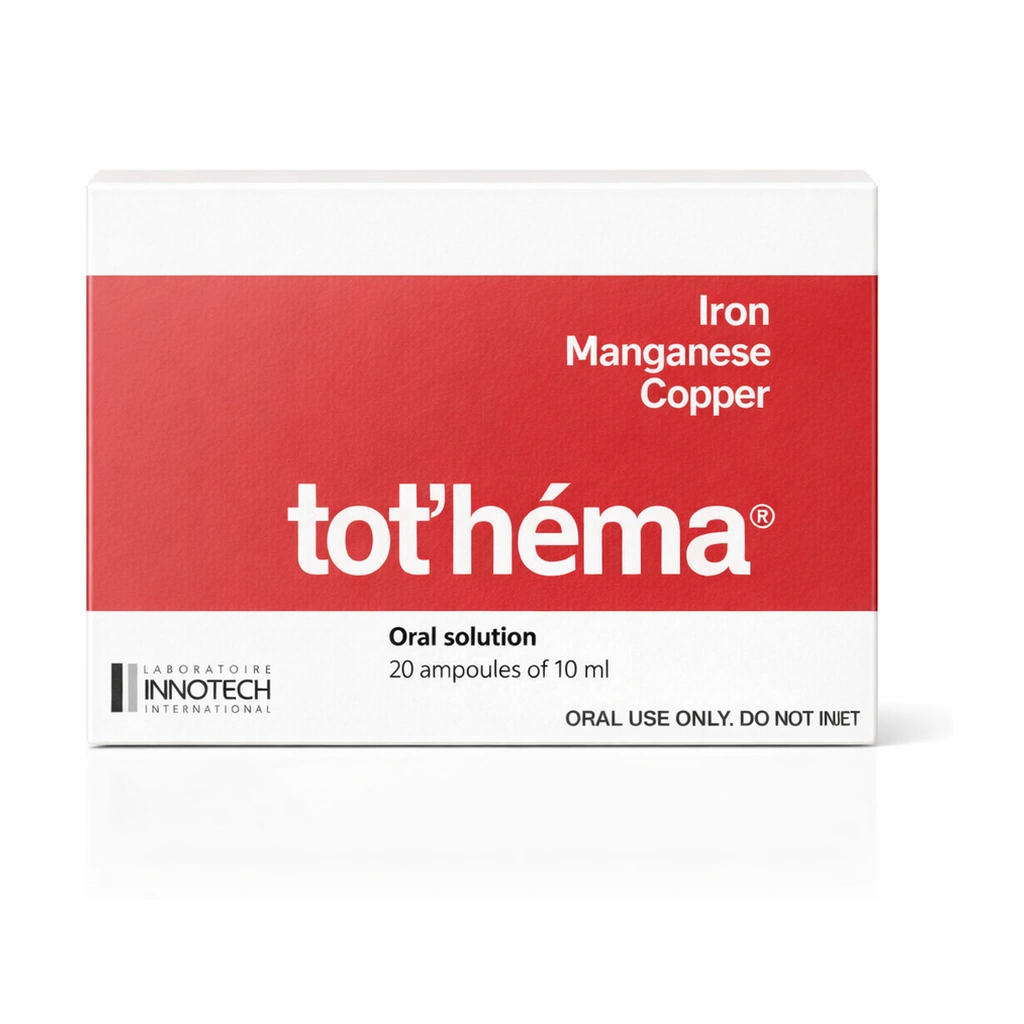 Tot'hema is a drinkable oral mineral solution that combines iron, manganese, and copper in single-use ampoules to support iron replacement in people with iron deficiency states.