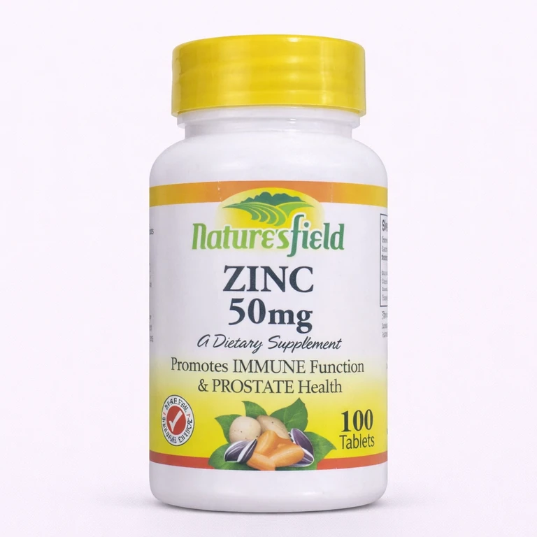 Nature's Field Zinc 50 mg provides a high-potency dose of essential zinc, a vital mineral involved in over 300 enzymatic reactions in the body. This daily supplement is specifically formulated to strengthen the immune system, protect cells from oxidative stress, and promote healthy, clear skin. Zinc is also critical for DNA synthesis, protein production, and supporting the body's natural healing processes.
